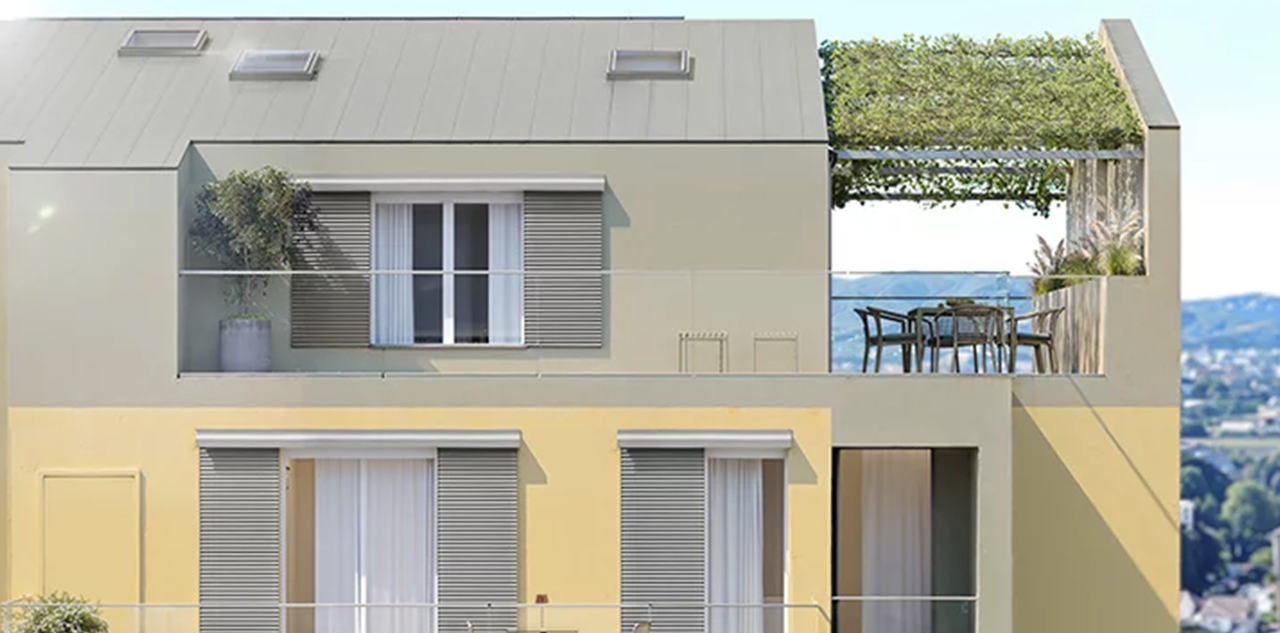 Le ampie logge e i balconi con parapetti in vetro e metallo garantiscono luminosità e connessione diretta con l'esterno, mentre la copertura piana ospita gli impianti predisposti per soluzioni sostenibili come pannelli solari e fotovoltaici.